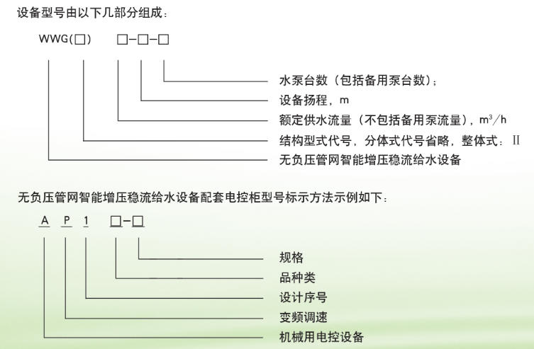 WWG系列無負(fù)壓管網(wǎng)智能增壓穩(wěn)流給水設(shè)備是直接連接到市政給水管網(wǎng)或其他有壓管網(wǎng)上,采用穩(wěn)流補(bǔ)償和真空移植技術(shù)全密閉供水,有效利用官網(wǎng)原有壓力,對(duì)管網(wǎng)不產(chǎn)生負(fù)壓且能穩(wěn)定和調(diào)節(jié)流量的給水設(shè)備。可廣泛應(yīng)用于純凈水、直飲水、自來水的加壓、增壓。